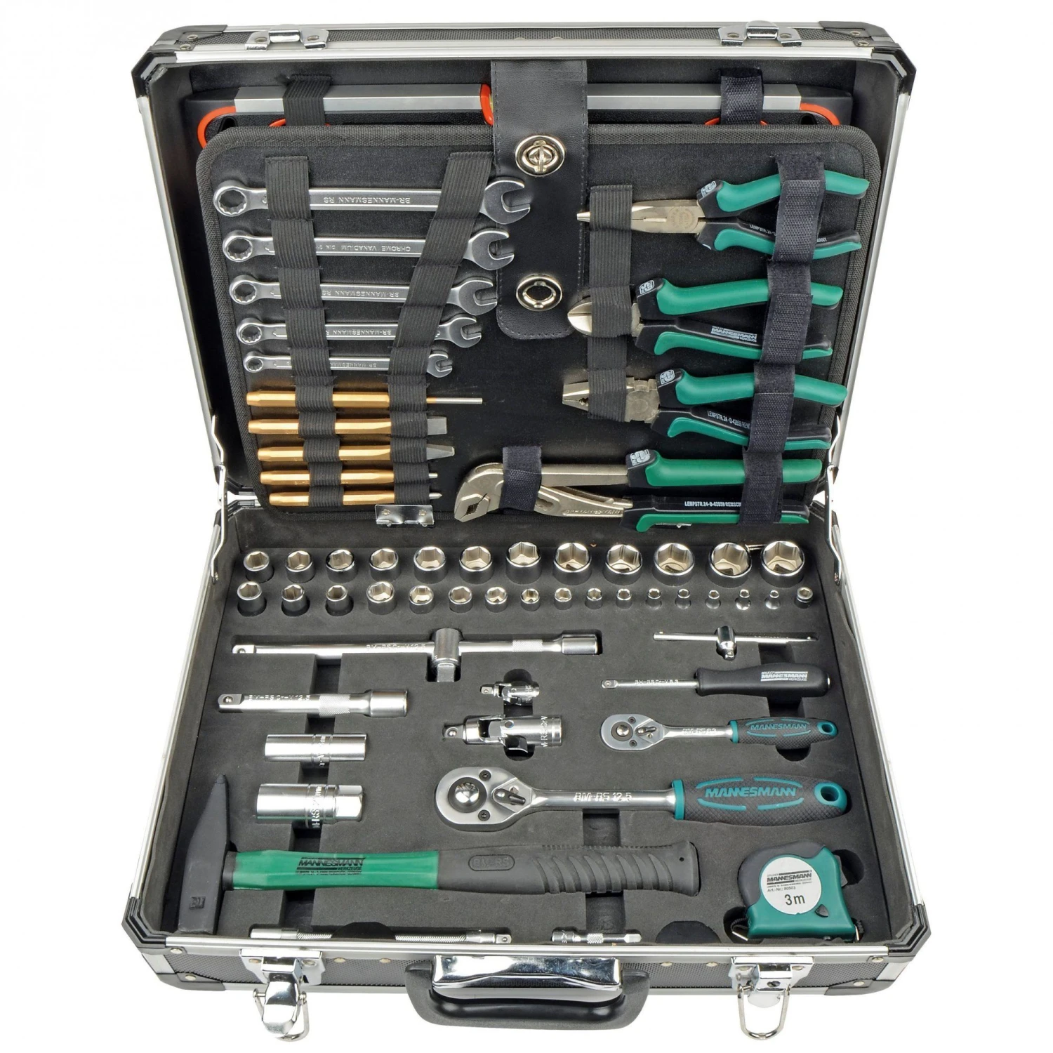Levering omvat 160 gereedschappen (een tang, een combinatie tang, een zijsnijtang, een spitsbek tang, combinatiesleutels, een ingenieurs hamer, een meetlint, een steenbeitel, een houtbeitel, een geïsoleerde priem, een centerpunt, een parallelle priem pen, schroevendraaiers, precisie schroevendraaiers, een spanningstester, een multi-bits schroevendraaier, bitjes, een snel wisseladapter, een magnetisch torpedo-waterpas, een handzaag, vervangende handzaagbladen, een hobbymes , vervangende messen, universele werkplaats schaar, ball-end inbussleutels, ratelende spansleutel, uitbreidingen, een schuif uitbreiding, universele gewrichten, een flexibele verlenging, een schuivende T-balk, ratel doppen, bougies doppen).
