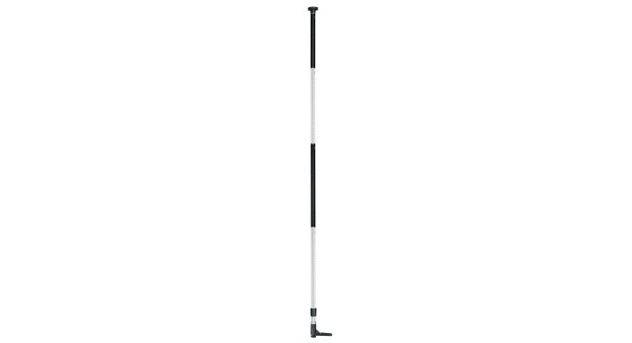 Het statief wordt tussen plafond en vloer geklemd en het lasermeetinstrument is een handomdraai op de juiste hoogte klaar voor gebruik.