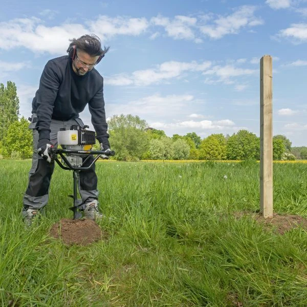Om palen, hekken of kleine bomen stevig vast te zetten, heb je diepe gaten in de grond nodig. Dat klusje heb je zo geklaard met deze grondboor van Powerplus op benzine.