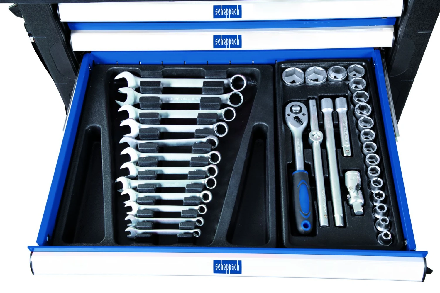 Altijd het juiste gereedschap. De Scheppach TW1000 gereedschapswagen is een compleet gevulde gereedschapswagen op wielen. De sterkte constructie wordt geleverd inclusief 263 tools! Met dit grote aantal gereedschap kun je veel kanten op. Elke tool heeft